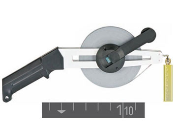 Taśma posiada z jednej strony podział milimetrowy, a z drugiej calowy.